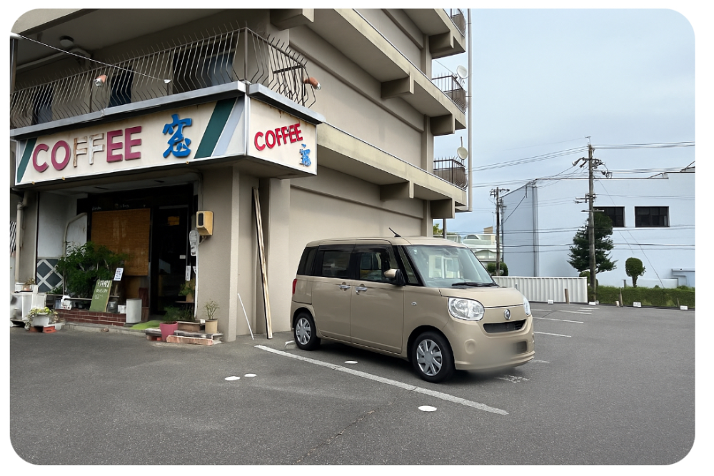 駐車場は、店舗前に2台と、店舗の右側に10台ございます♪