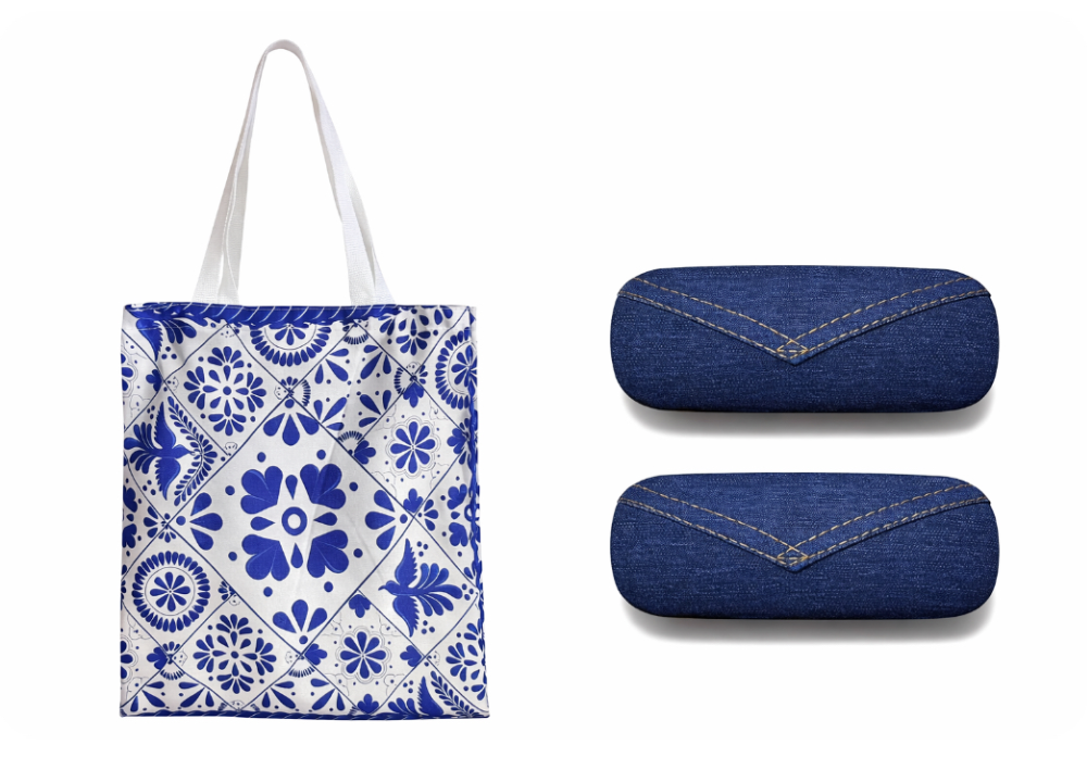 (右)デニムメガネケース