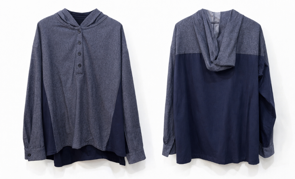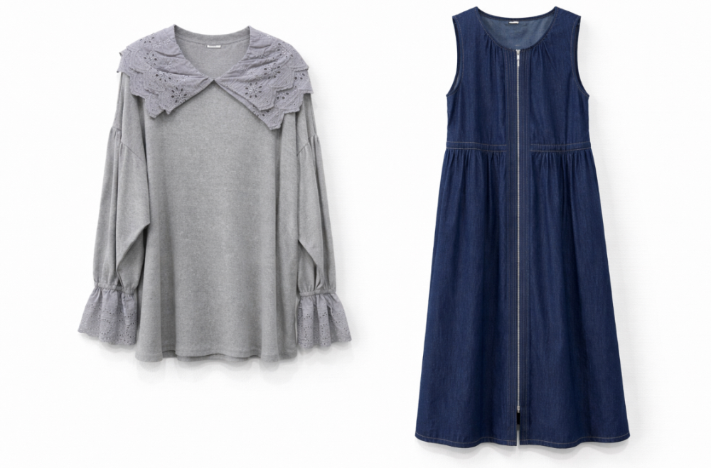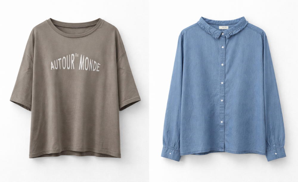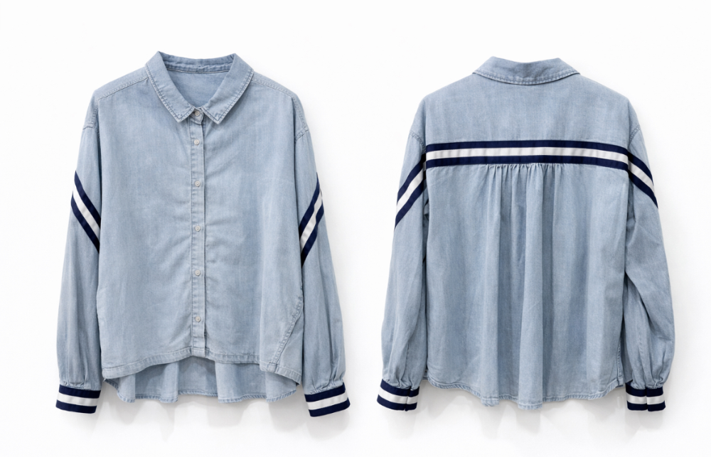 右)デニムのようなブラウス