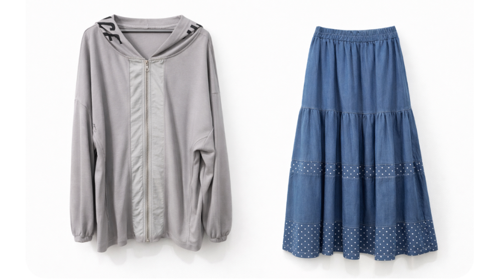 右)柔らかデニムスカート