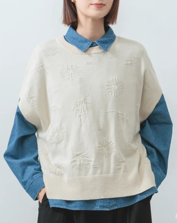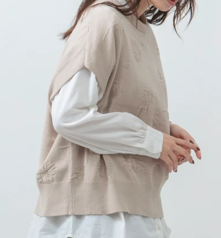 立体花柄綿ジャガードベスト