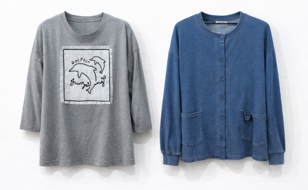右)カットソー地のはおり